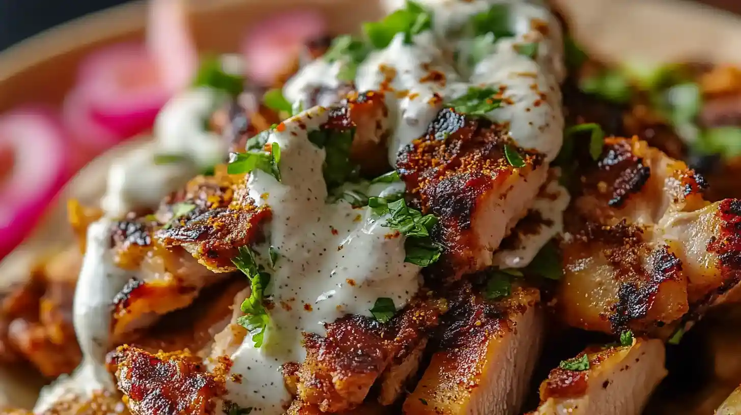 - Serve: Serve chicken in pita bread or over rice with vegetables. Drizzle generously with garlic sauce.